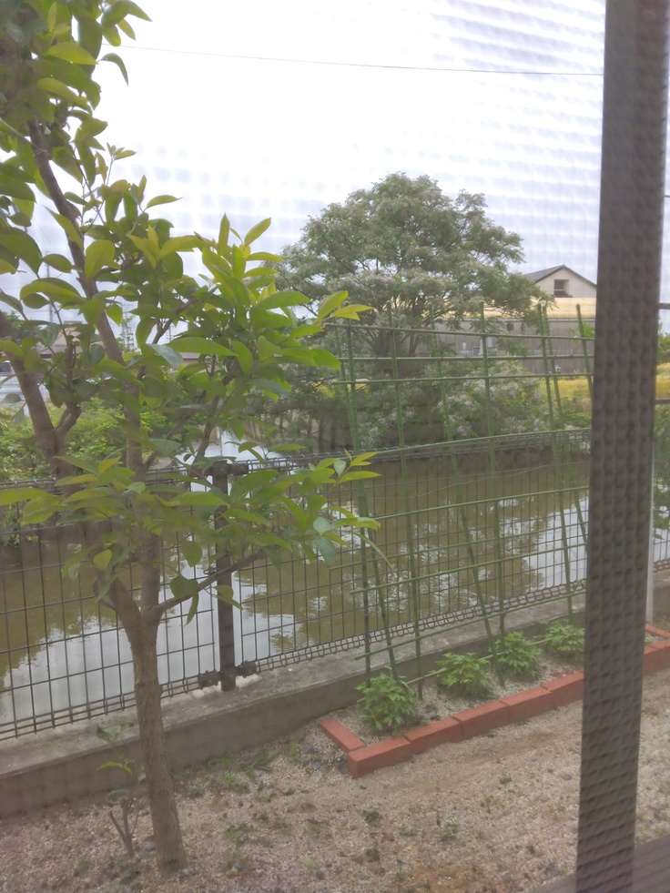 対岸の大きな木の花が満開でとても良い香りがします💐(何の木か分からないけど)