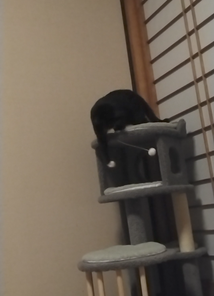 朝も2階からおりてこず、ちょっと激しめの遊びをしてました😯