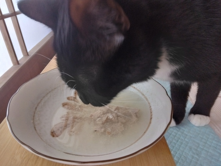 カツオのスープも全部飲み干して身だけ残すので、ゆきが喜んで食べてくれます🐈おこぼれ🤝