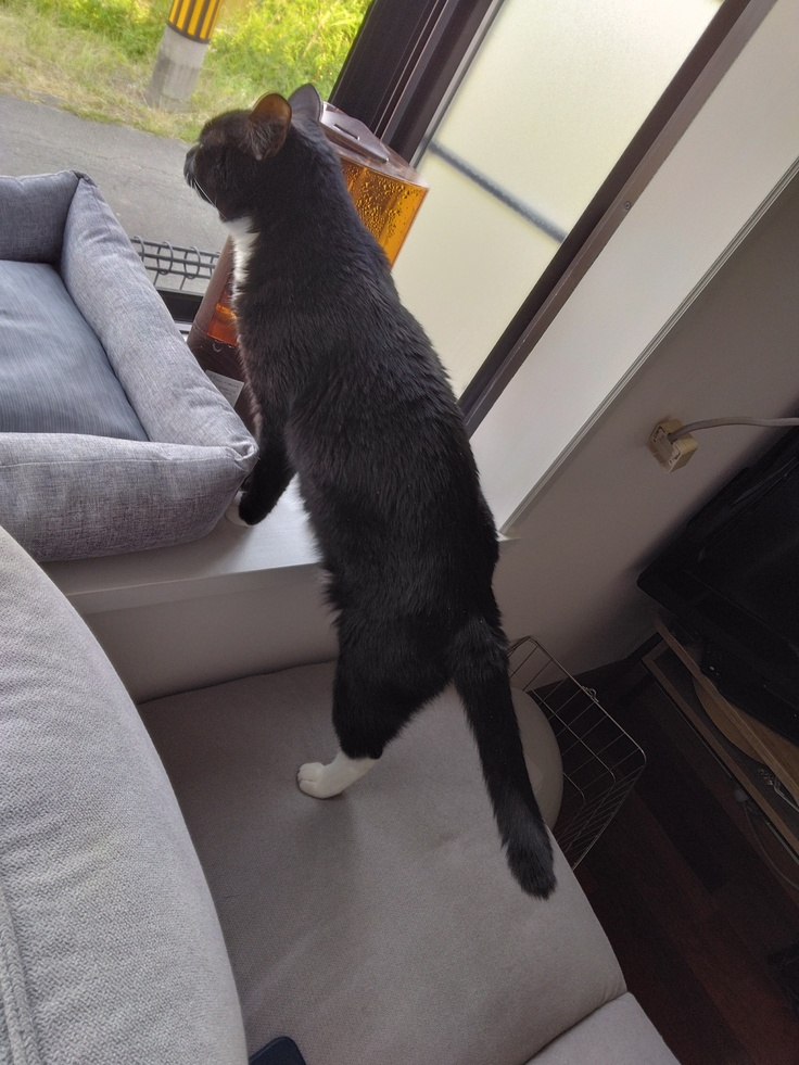 朝寝のルーティンの邪魔にならないよう隣から。
