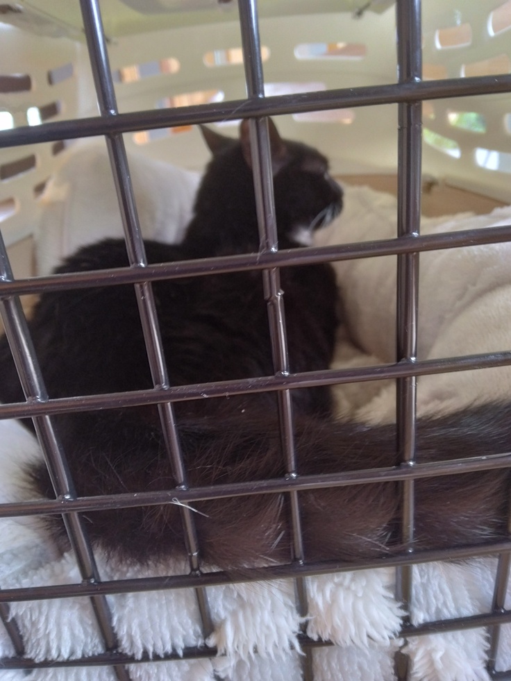 キャリーの外側に毛がいっぱいついてたので、だいぶ暴れたようです…