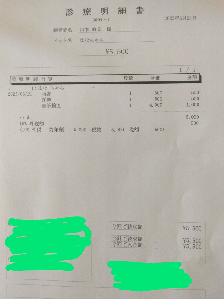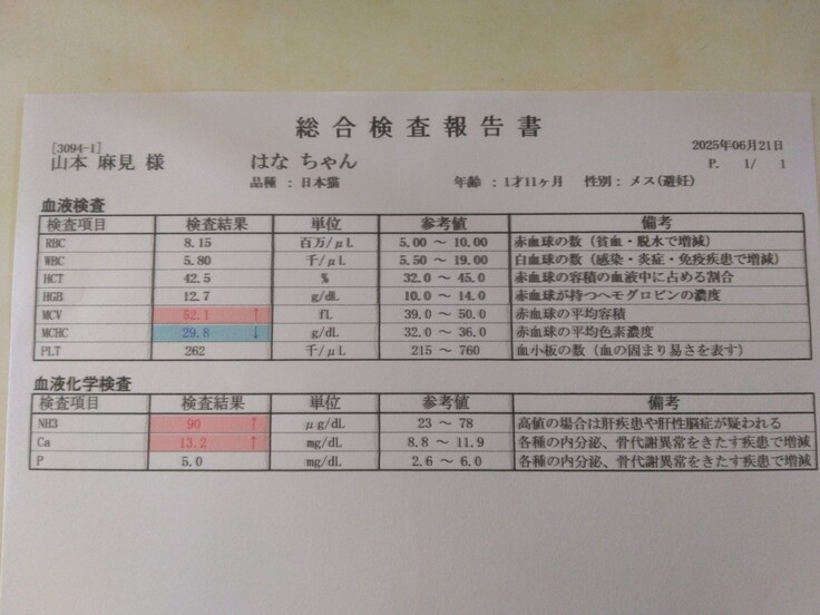 アンモニア、カルシウム、リンだけ検査しましょうとのこと💉