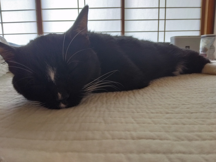 サーキュレーターまわしたら、風と動く機械が嫌いなようで下で朝寝💤