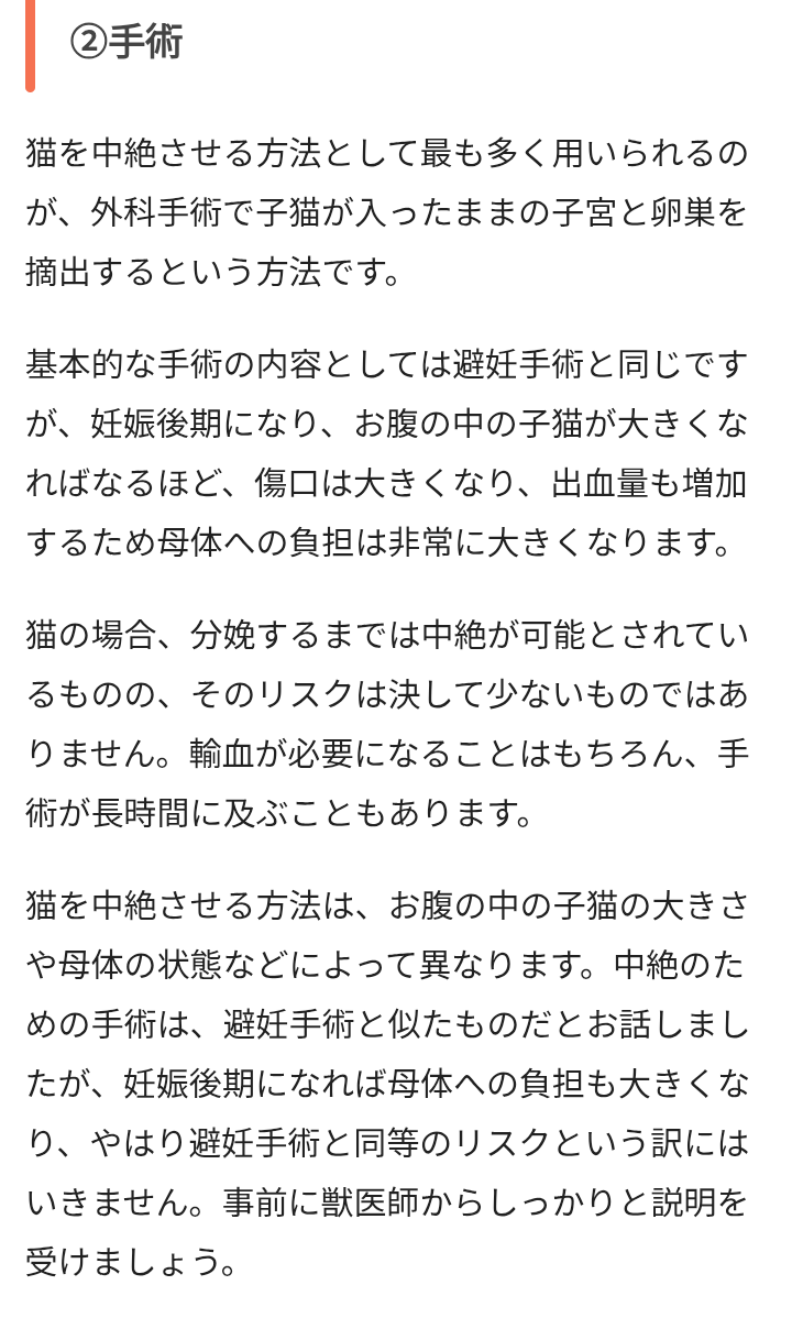 隣の市の保護団体の方に連絡したら、130匹いるから自分の所は無理だし、堕胎した方がいいと言われました。しんどい