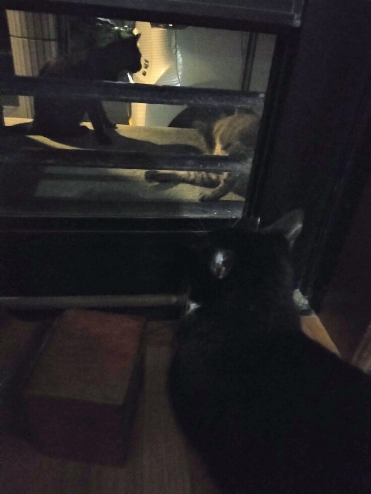勝手口から外にいる野良さんを30分ほど2人で観察してました🙂