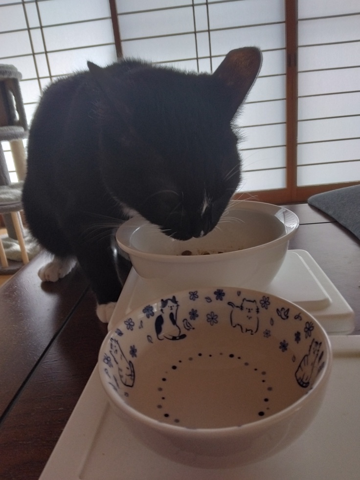 朝9:00にちゅーる1本ずつ食べ、昼~夕方まではウェットフード完食。