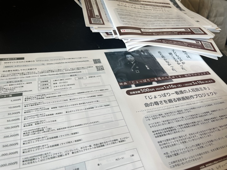 1月16日から60日間の予定でスタートした映画「じょっぱりー看護の人花田ミキ」のクラウドファンディングも残すところ30日となりました。
