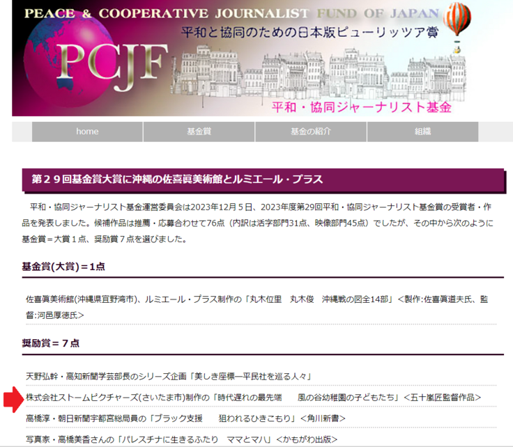 「第29回平和・協同ジャーナリスト基金賞」の奨励賞に五十嵐匠監督のドキュメンタリー映画「時代遅れの最先端 風の谷幼稚園の子どもたち」が選ばれました。