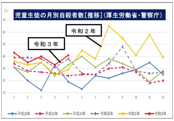 その課題の中に「不登校」や「子どもの居場所」があり、そして、コロナ禍で急激に増えた若者の自殺が過去最多(※厚生労働省・警察庁発表グラフ参照)と聞き、自分に何が出来るだろうと自問自答した結果、フリースクールを作ろうと思いたちました。