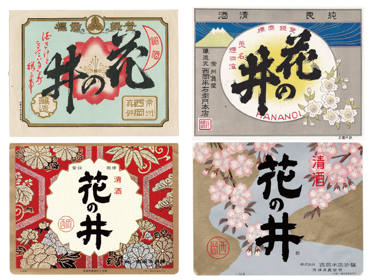 そこで現在、西岡本店公式X(@hananoi1782)では、CF限定ラベルのデザインに使用するラベルを、花の井の旧ラベルデザインから選んでいただくアンケートを実施しております。