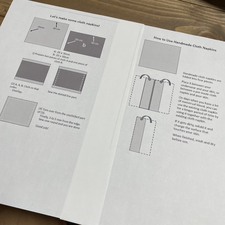 また、SNSを通じて募集したハンドメイドボランティアの方々にご協力いただきながら、布ナプキンを入れるためのハンドメイドポーチを制作し、一緒に寄贈しました。ポーチは日本リ・ファッション協会様から寄贈していただいた着物をリメイクし、合計約150個制作しました。日本から遠くの地の女の子を応援するお手紙を送るイメージでレター型にするなど、こだわりのハンドメイドです。