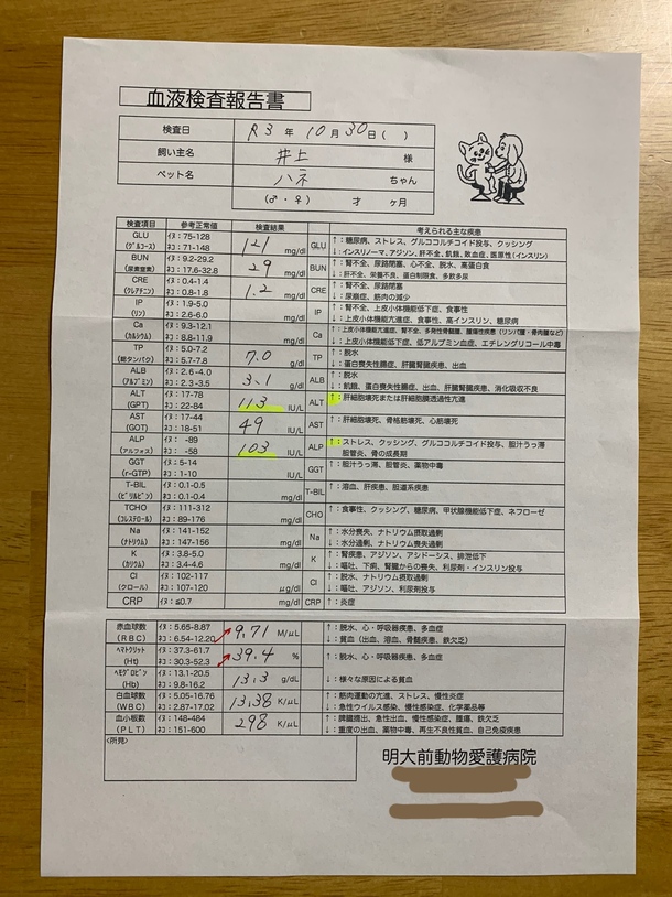 前回から数値が高めだったALTとALPは、引き続き正常値より高かったですが、前より下がっていたのでよかったです✨