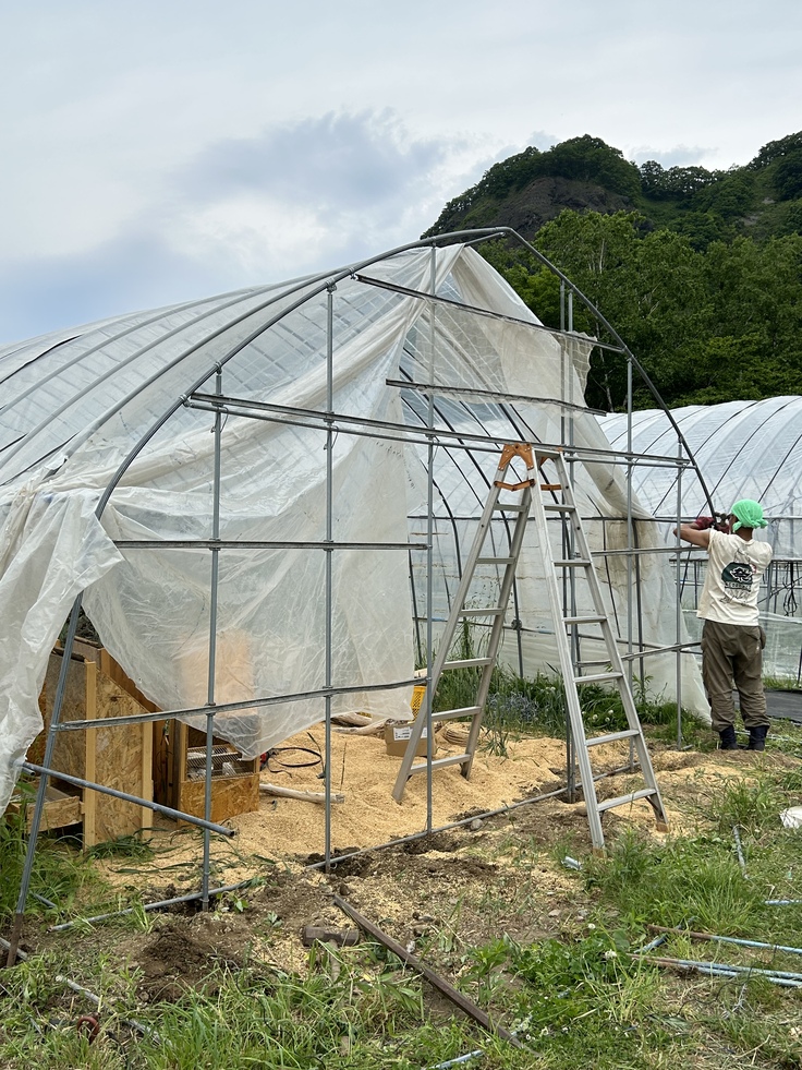 また、10月の爆弾低気圧ではハウスのビニールが強風で裂けて飛ばされる事件もありました。鶏たちはみんな無事でしたが、しばらくはそのショックで産卵は不安定に。そういった中で、鶏の繊細さやたくましさ、環境への順応など学びも多くありました。