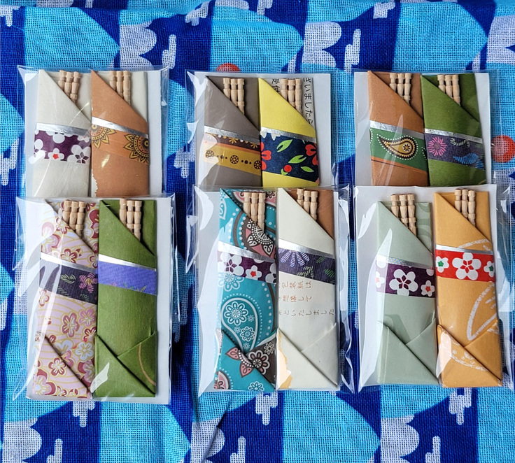 下の写真は、リターンの子ども達・利用者様が作る『手折り紙爪楊枝入れ』のイメージ写真です。ひとつひとつ丁寧に手作りとなります。※模様やサイズは発送品とは異なる可能性がありますが、実物の写真なのでご参考としてください。