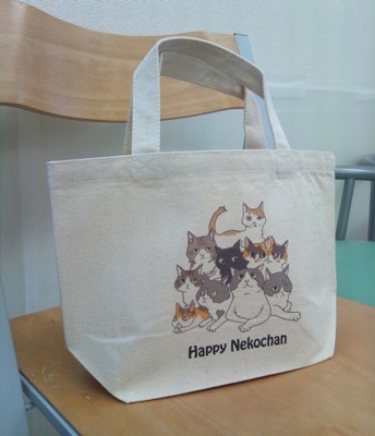 本日は、リターンのトートバッグができましたので、お知らせいたしました。イラストは現在、東京キャットガーディアンのブログ、TCGシェルター日記において、猫漫画を連載しておりますイラストレーター五郎丸のデザインです。繊細でかつ優しさのあふれるイラストです。