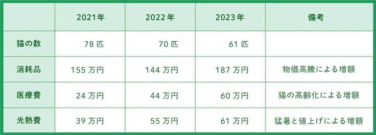 猫の数が減ったことで、猫に掛かる経費も変わってきており、内容を一部変更いたしました。