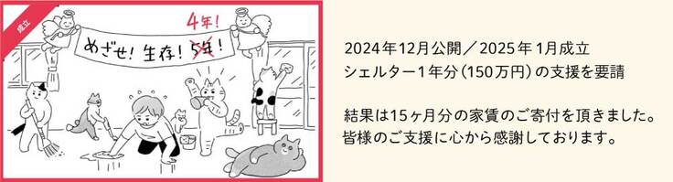 ●2025年1月。1年分の家賃を求めるクラウドファンディングを公開し成立。