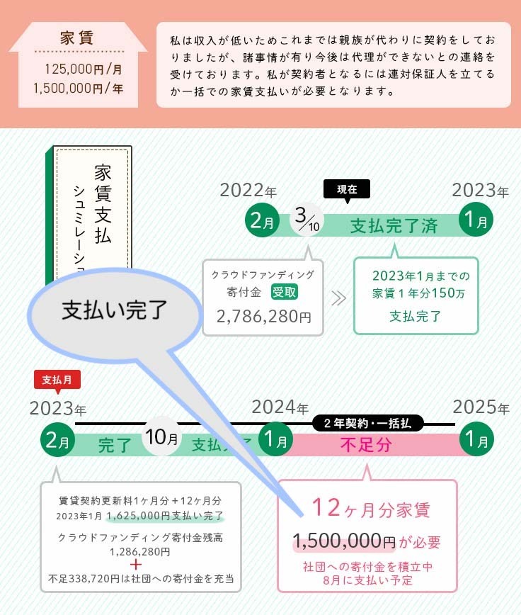 そして8月28日に、シェルター家賃1年分の支払いが完了したことをお知らせ致します。