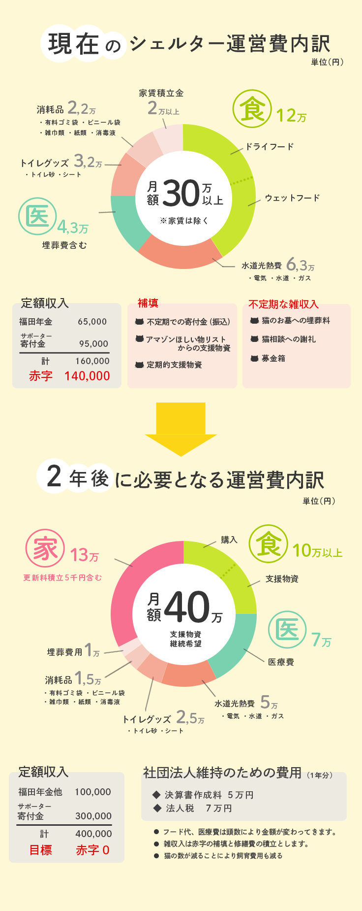⚪️ 物価高騰で飼育費用が増えており、支援物資の量が減った場合に赤字が増えるため。