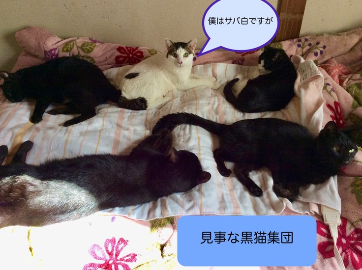 同じ色の猫は仲良しという証拠写真です。3年前の写真なので、うち2匹はもういません。