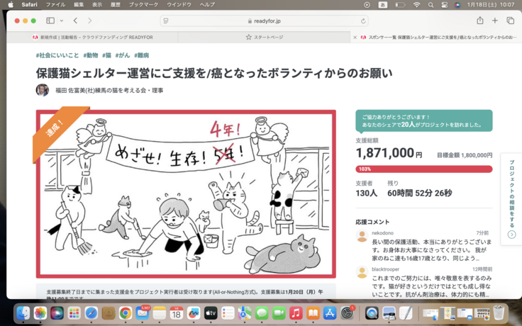私の1回目のクラウドファンディング(保護猫カフェ)成立は、2014年1月6日でした。