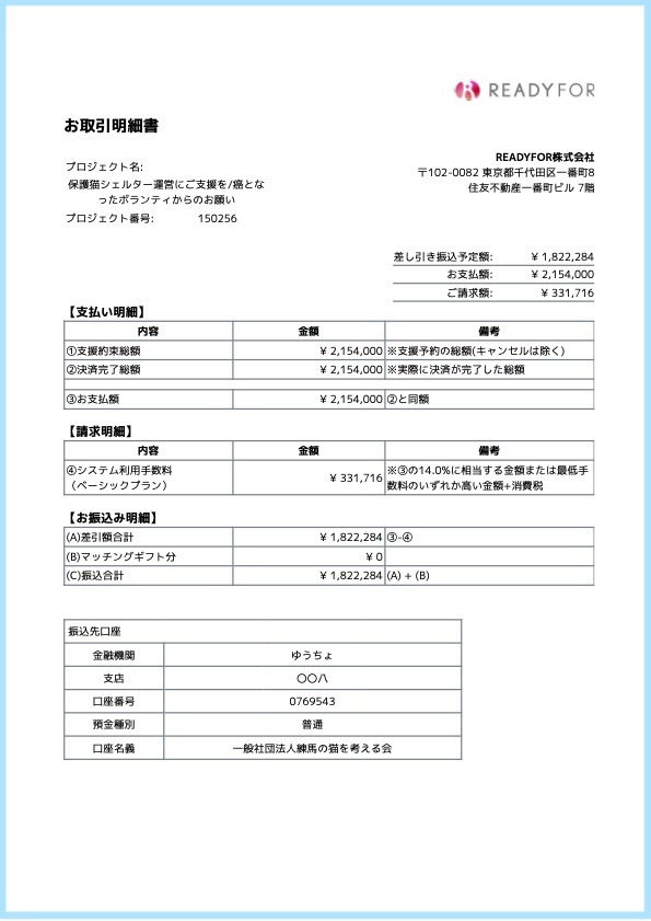 領収書が揃いましたのでご報告いたします。皆様からのご支援に心から感謝しております。