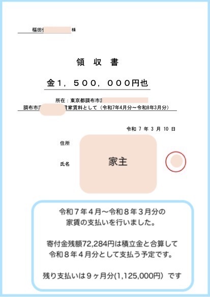3月10日に支援金を受け取り、家賃の支払いを行いました。ありがとうございました。