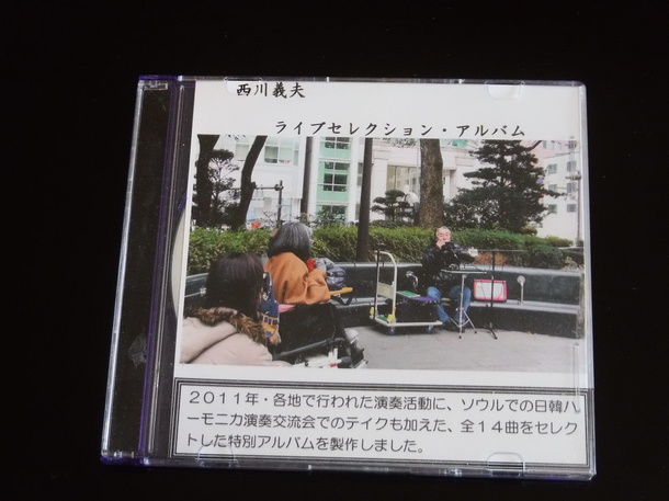 還暦を迎えた2005年1月、一人で公園でのストリートライブを始めてから、私の人生は、がらりと変わりました。その年の8月には「第1回西川義夫ハーモニカリサイタル」を開催。翌年には、台湾で開催されたアジア太平洋ハーモニカフェスティバルで2位に入賞。これまでに、韓国・中国・ドイツ・ポーランド・アルゼンチン・ブラジル・台湾等でのライブツアーも実施しました。