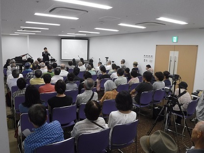 皆様の情報拡散のお力と共に、地元の西日本新聞が朝夕刊に「告知記事」を三回掲載して下さったこともあって、開場前から沢山の方々がお見えになりました。当初準備した椅子では足りずに、急遽椅子を追加し、会場は満員の盛況を頂きました。
