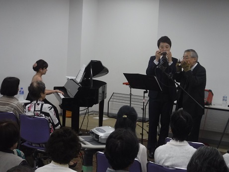 休憩をはさんで、後半はピアニストの迎美樹さんと共に、三人での演奏を行いました。