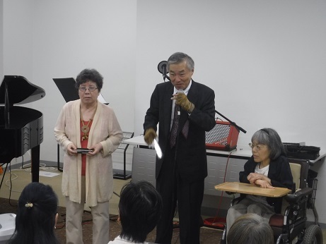 コンサートの最終場面で、8月2日から台湾で開催される第11回アジア太平洋ハーモニカフェスティバルに参加する、重度障害者に同行していただく「ボランティアヘルパーさんの参加費を支援していただきたい」とアピールを行い、私を含めた3人を紹介しました。たとえ重い障害を持っていても、自己表現の場を諦めるのではなく、社会参加の可能性を拡げたいとの訴えです。