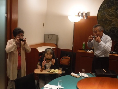尚、車いすの羅さんのソロと、台湾で行う3人の合奏は、午前中の発表会で演奏できなかったため、コンサート終了後に開いた交流会の冒頭に、レストランで演奏しました。