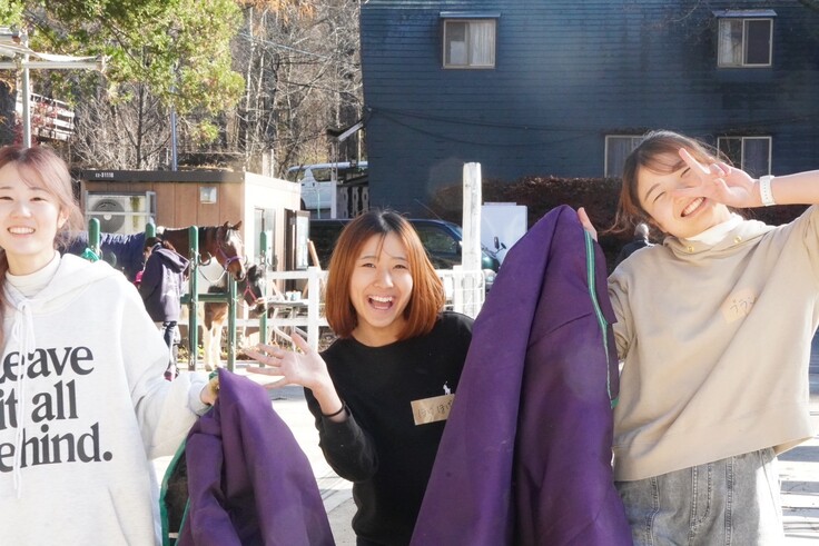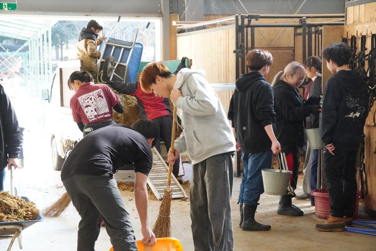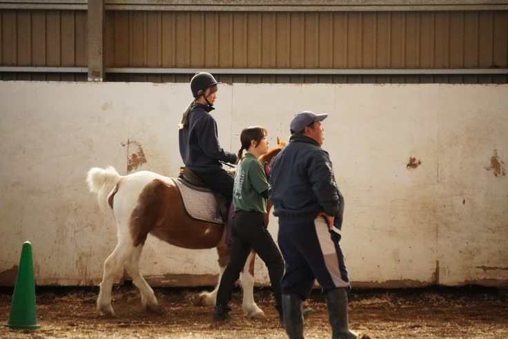 子供が乗る馬を引くための練習や厩務作業などキャンプで実践できる内容の他に、自分たちが実際に乗馬をしてみる体験やチームビルディングの一環として班対抗のジムカーナ(障害物競走)も開催!