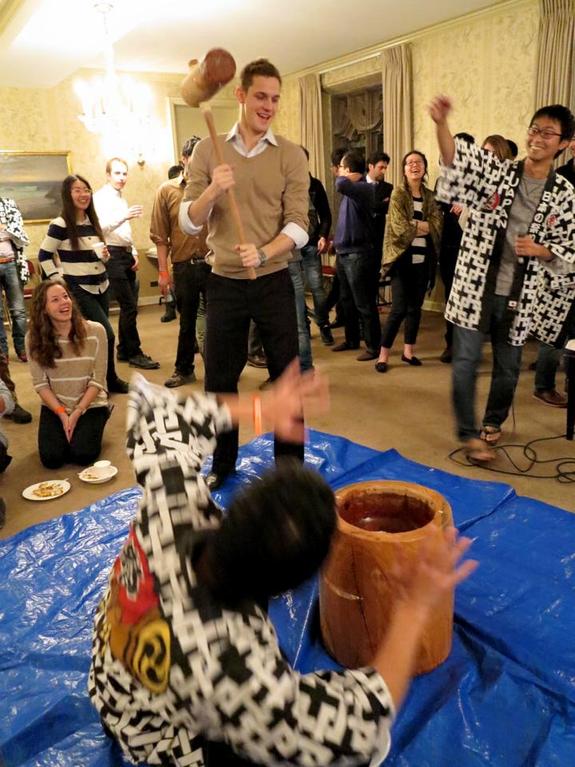 総勢90名程度の学生が集まり、日本に関するクイズ大会、もちつき体験、寿司やすき焼き等の日本食を楽しみました。
