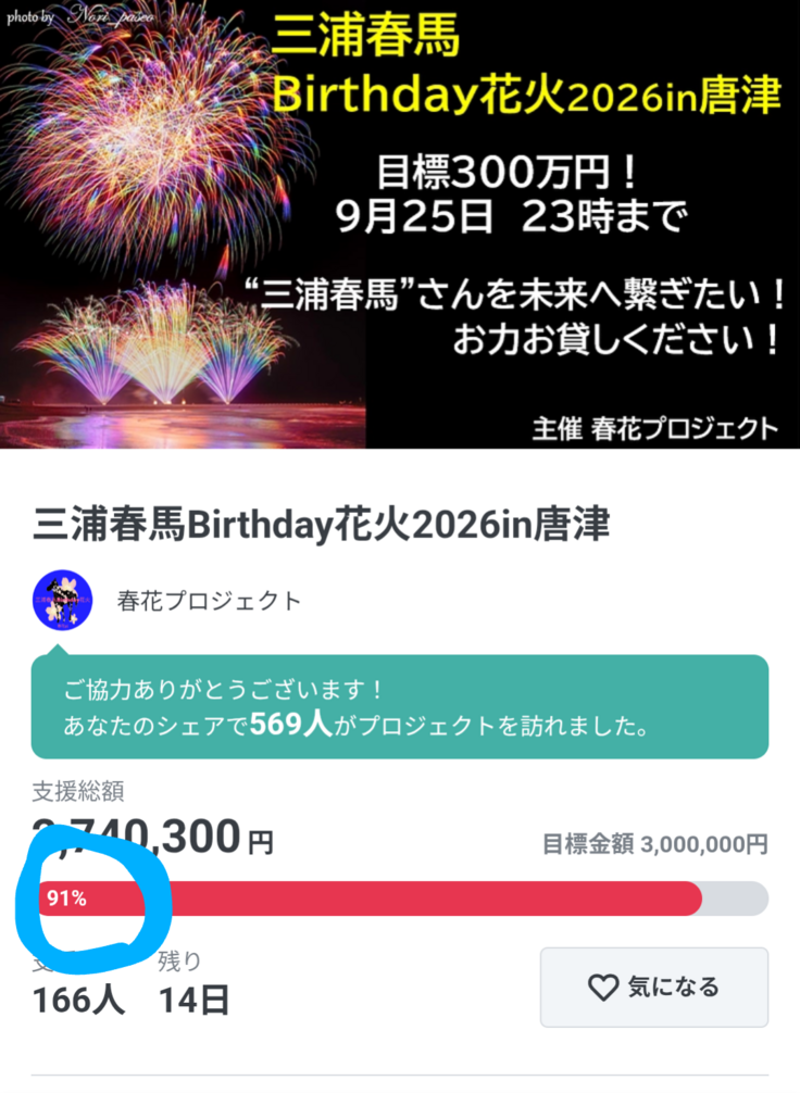 三浦春馬Birthday花火2026in唐津を応援いただき、ありがとうございます