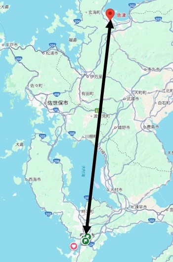 いつぞやもお話しましたが、長崎から唐津を公共交通機関で移動すると3時間は優にかかります。これがバス(車)だと1時間40分でOK