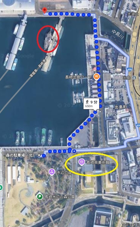 駅伝コースの水辺の森公園付近にも聖地は点在していますが、水辺の森公園から、寄り道しないで、観光丸まで歩いたとして、グーグル先生は徒歩で9分かかるとおっしゃっております。が、実際は9分なんかでは着きませんw