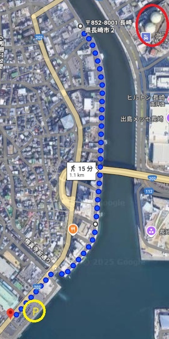 例えば車を水辺の森公園の駐車場に停めて、周辺をめぐるとすると、最終地点観光丸にたどり着いても、車のある水辺の森公園まで戻らなきゃというミッションが……。歩く距離は倍=倍疲れるw