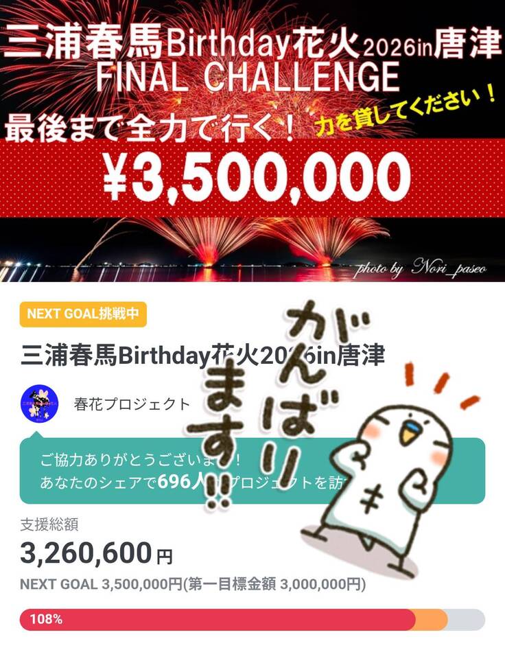 三浦春馬Birthday花火2026in唐津を応援いただき、ありがとうございます