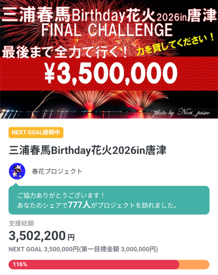 三浦春馬Birthday花火2026in唐津を応援いただき、ありがとうございます