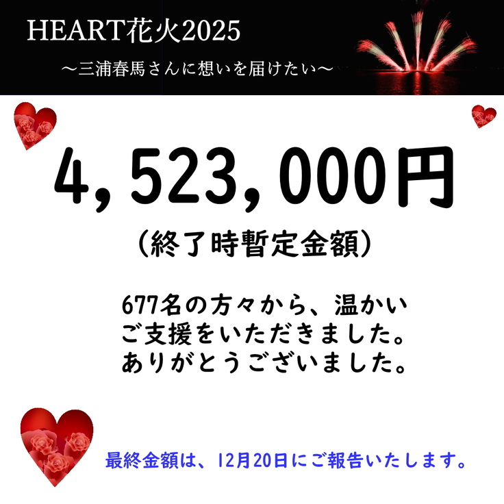 昨晩、23時を以て、HEART花火2025のクラウドファンディングが終了しました。