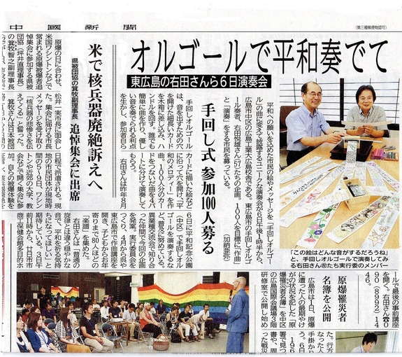 本日の中国新聞の朝刊25面に掲載していただきました。