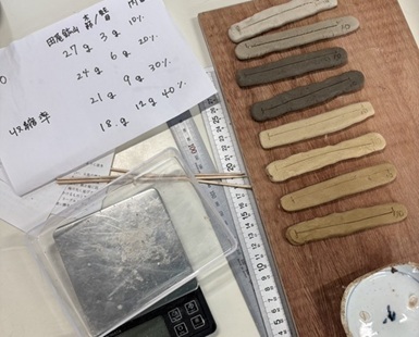 五島焼はまだ製作半ばのため、粘土の収縮率を調べるテストピースも作ってもらいました。