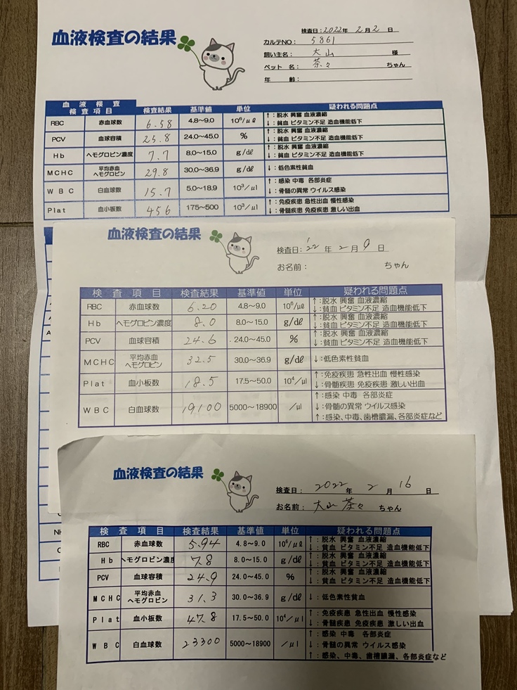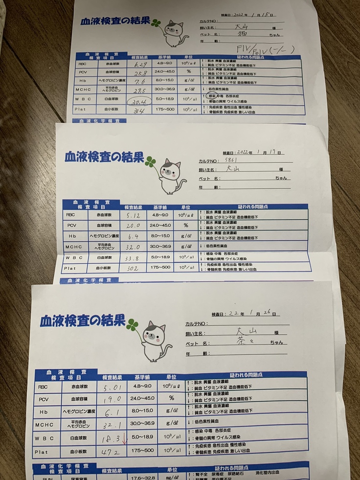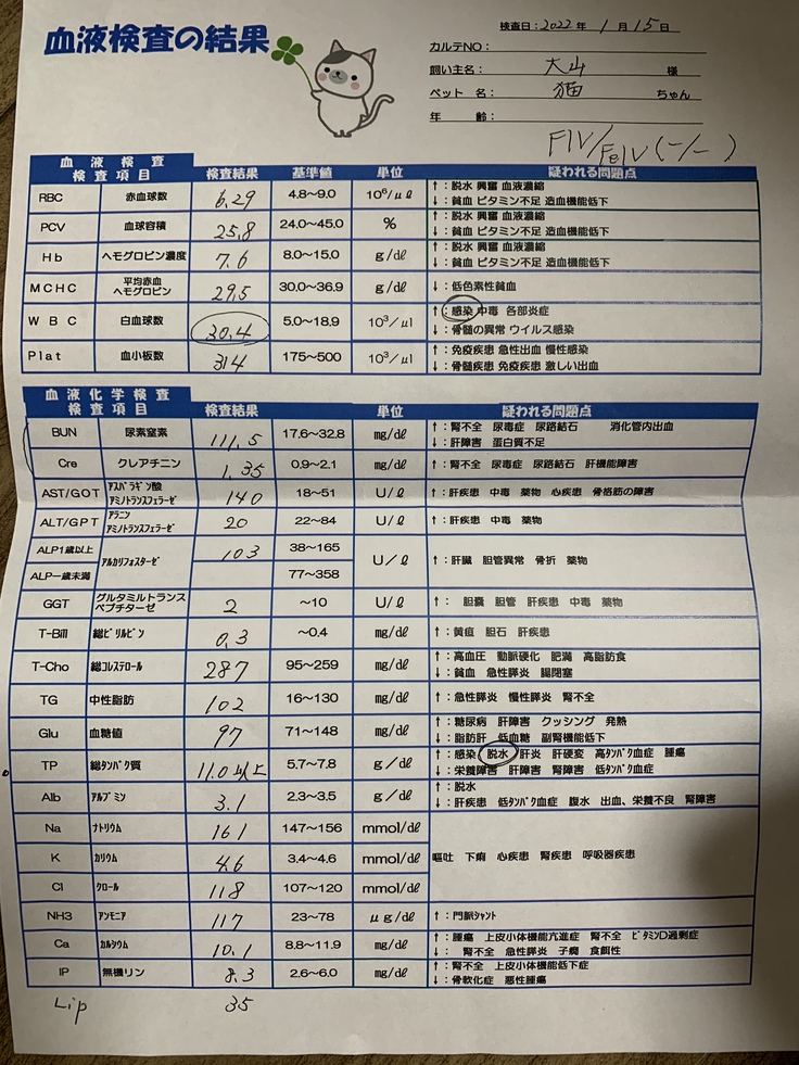 血液検査の結果、猫ちゃんは、とてもひどい状態との事でした。