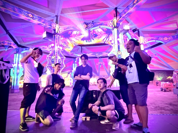 翌日は45度の炎天下の中(屋根があるとは言え)テントステージでの楽器セッティングからリハーサル。フェスのステージテクニカルのチームと(おそらく)初めて聞く和太鼓のサウンドを、どこまでしっかり響かせることができるか、限られた時間の中でお互いに試行錯誤しながら、準備準備。