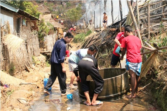 みんなで火の手から家を、キャンプ内の他の地域を守りました。