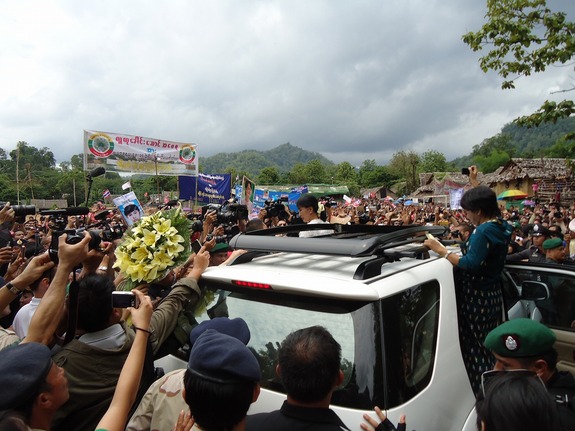 (アウンサンスーチーさんがメラ難民キャンプを出発するとき。彼女の存在は、多くの難民の人々を勇気づけているようでした。)