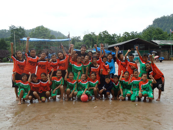 今年の式典には、日本人の元プロサッカー選手(現バンコクグラスFCアカデミーコーチ、CREER FC代表、Jリーグアジアンアンバサダー)である、丸山良明氏が参加。前日には、難民の青年グループへのサッカー教室や難民の子どもたちやキャンプ委員会と一緒にサッカー親善試合を楽しみました。丸山氏は、キャンプの子どもたち、そして青年グループに対して、「自分はサッカーを通して、嬉しいこと、悲しいこと、面白いこと、やるせないこと、など様々な思いを経験してきた。是非、みんなにも何かに一生懸命取り組む中で様々な思いを感じてほしい。そのような経験は、将来何か大きな壁にぶつかったとき、それを乗り越える力になる。」と、熱いメッセージを伝えていました。