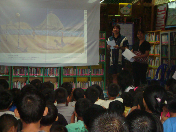 丸山氏は、図書館で行ったサッカー絵本の読み聞かせにもカレン語で挑戦。子どもたちは、おはなしの世界にどんどん引き込まれていました。丸山氏がカレン語で、「トゥカナムア~?(楽しかった?)」と聞くと、笑顔で「メ~!(はーい!)」と答える子どもたち。