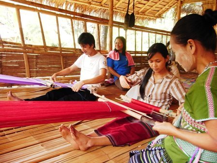 これは、機織を習う学生さん。このような教室が各キャンプにあります。